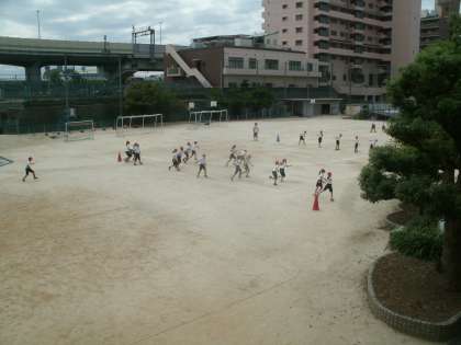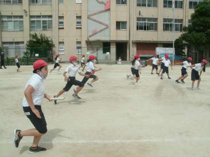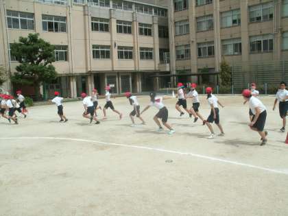 体育科学習の様子です。バトンパスに取り組んでいます。