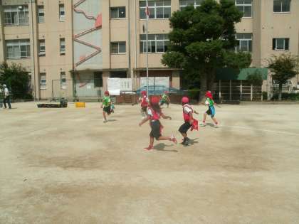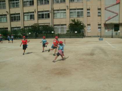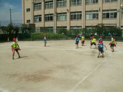 体育科学習の様子です。教室で考えた作戦が上手く使えたかな。
