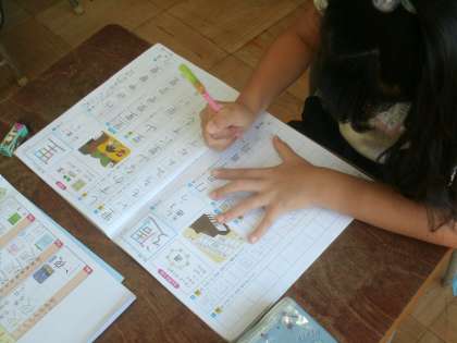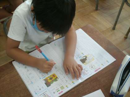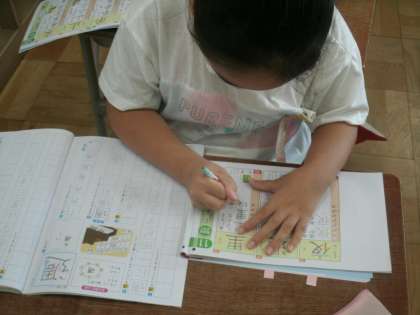 国語科学習の様子です。漢字学習に取り組んでいます。今日の漢字は「里」と「週」です。