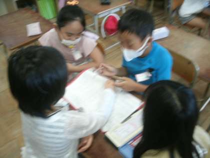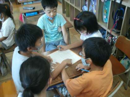 チームで「たからはこびおに」で勝つための作戦を考えています。