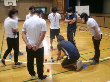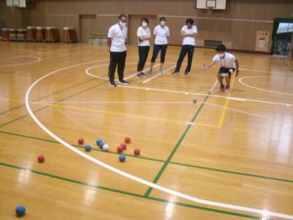 昨日の放課後にメンター研修として「ボッチャ」の実技研修会を実施しました。