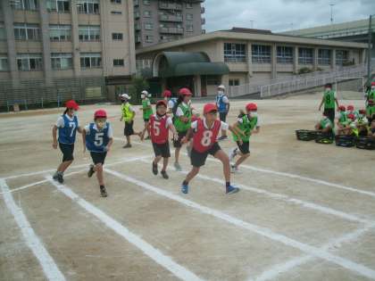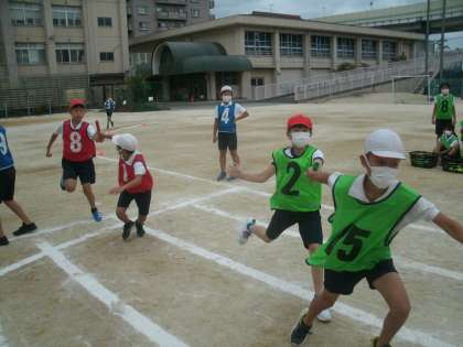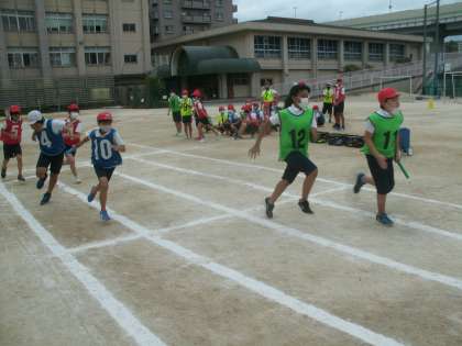 体育科学習の様子です。「リレー」の学習に取り組んでいました。バトンパスは上手くいきましたか。