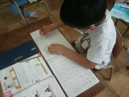 算数科学習の様子です。今日は「たしざん」です。 9+4=13