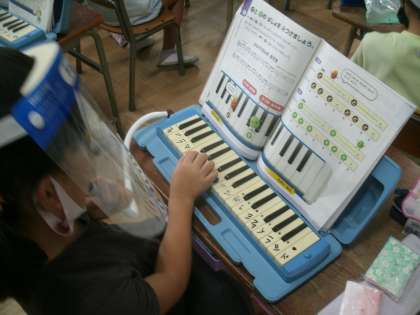 学習の様子(10月1日) 1年生(2) 公開日 2021/10/04 更新日 2021/10/04 お知らせ 音楽科学習の様子です。鍵盤ハーモニカの学習です。ドを親指でソを小指で押さえて音を出しています。 先生がお話をしている時についつい音を出してしまう子どももいました。ただ、鍵盤ハーモニカの音がプワーンというゆるい感じなので私は少し笑ってしまいました。 いいね(0)