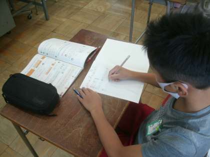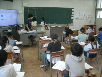 算数科学習の様子です。今日の学習課題は「わり算の商を分数で表そう」です。