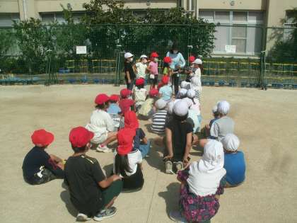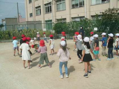 15分休みに1年生が「みんな遊び」をしていました。今日はドッジボールです。