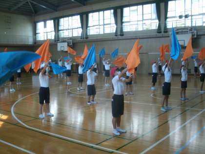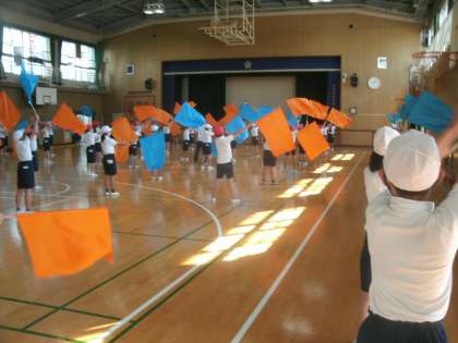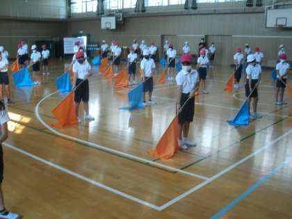 運動会の最後を飾るのは5・6年生の団体演技です。今年も「フラッグ」に取り組みます。