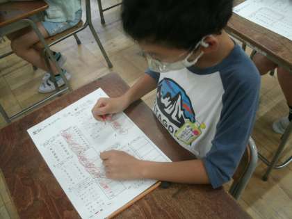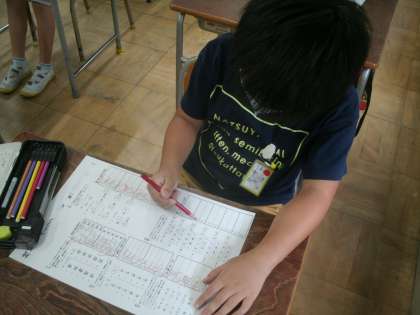 国語科学習の様子です。3学期の「漢字能力検定」にむけた練習プリントに取り組みました。