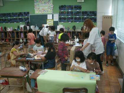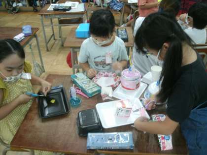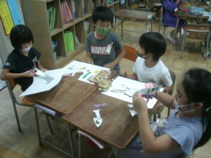 生活科学習の様子です。グループに分かれて、楽しいゲームを作っています。