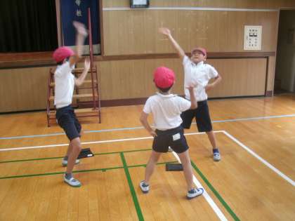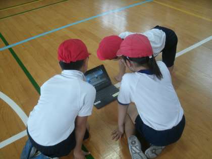 今日の練習はタブレット端末を使って、グループで練習に取り組んでいました。自分が踊る姿を見てみると、思っていた以上にできていない部分があることに気がつきます。子ども達はリーダーを中心に今まで以上に熱心に練習に取り組んでいました。