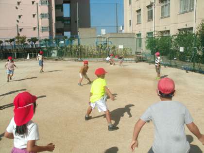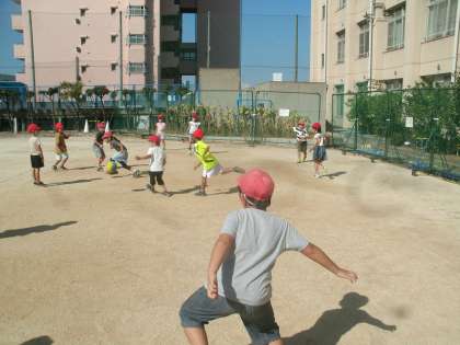 「良い子のドッジボールコート」で仲良く遊んでいます。