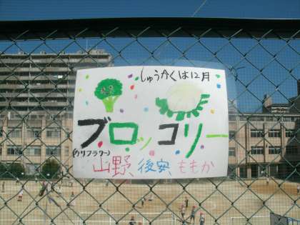 野菜部の子ども達が育てている野菜の看板が貼られていました。