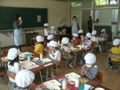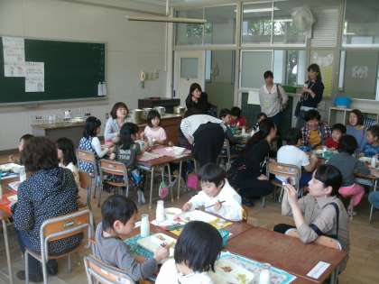 学習参観・懇談会(1) 公開日 2015/04/28 更新日 2015/04/28 お知らせ 4月23日(木)、今年度初めての学習参観・懇談会を行いました。保護者の皆様にはたいへんご多用の中ご来校いただきまして本当にありがとうございました。1年生の参観は、給食参観でした。自分たちで運搬・配膳し、食べている様子を参観していただきました。おうちの人に参観しに来ていただいて、1年生の子どもたちは大張り切りで頑張っていました。 いいね(0)