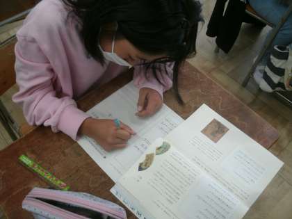 国語科学習の様子です。「古文に親しむ」ということで「竹取物語」以外にも「平家物語」「枕草子」「徒然草」も学習しています。私の好きな松尾芭蕉の「奥の細道」にも取り組んでいるようです。