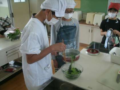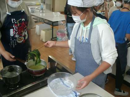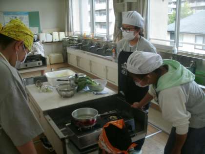 家庭科学習の様子です。久しぶりの調理実習です。みんな楽しそうですね。