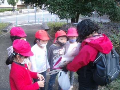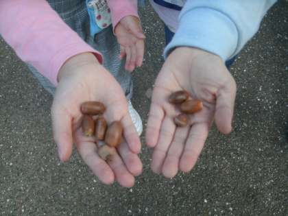 学校前の「ふれあい西公園」で自然観察学習に取り組みました。どんぐりもたくさん拾いました。