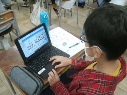 食育学習の様子です。朝ごはんについて考えています。