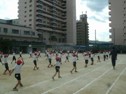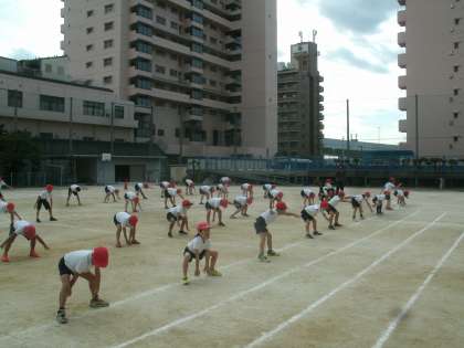 3・4年生が団体演技の練習に取り組んでいます。