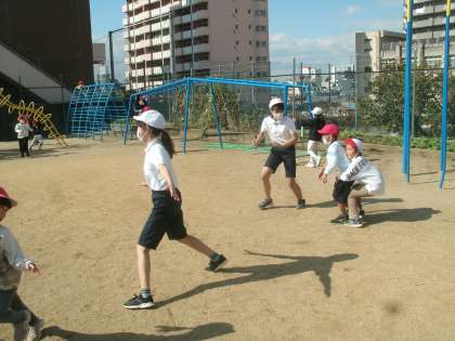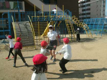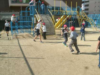 昼休みの第2運動場の様子です。今日も6年生の女の子達が1年生と遊んでくれていました。