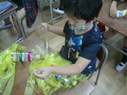 2年生も団体演技「ばんばん!ばばーん!」で使う物を作っています。さすがお兄ちゃん・お姉ちゃんです。落ち着いて作っていますね。