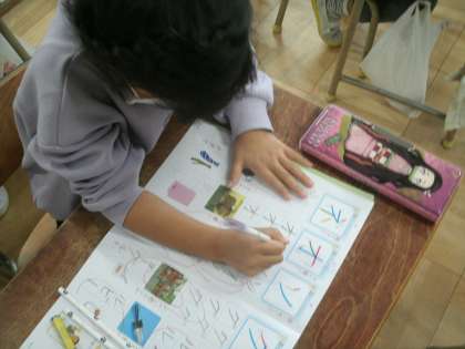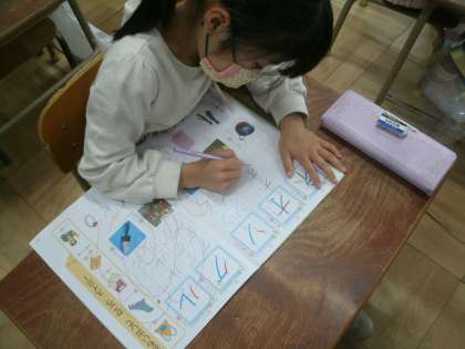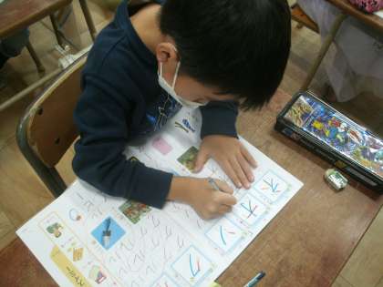 国語科学習の様子です。「カタカナ」学習に取り組んでいます。今日のカタカナは「オ」と「ネ」です。