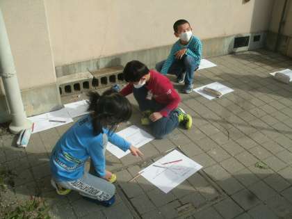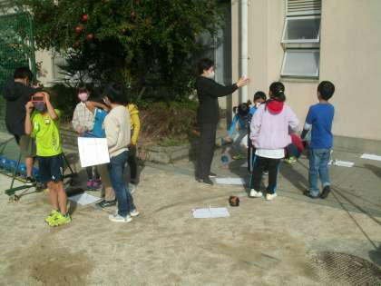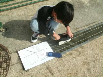 時刻を変えて、運動場でかげの動きを記録していこう。