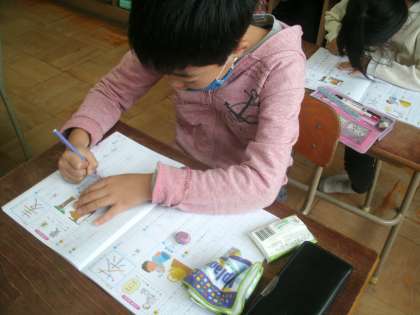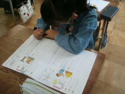 国語科学習の様子です。漢字の学習に取り組んでいます。今日の漢字は「麦」です。