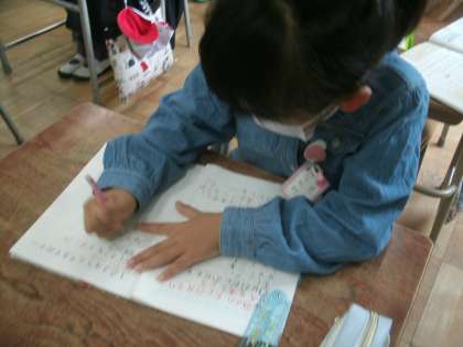 算数科学習の様子です。「4の段」の九九の問題に取り組んでいます。