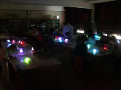 理科室を真っ暗にして、みんなで鑑賞会です。