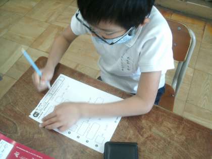 朝一番で漢字の小テストに取り組んでいます。名前は丁寧に書けているかな。