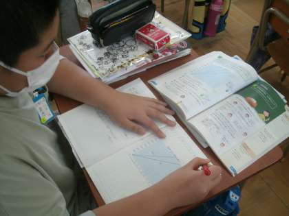 算数科学習の様子です。習熟度別少人数学習で進めています。今日の学習課題は「グラフからいろいろなことを読み取ろう」です。