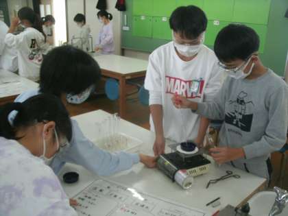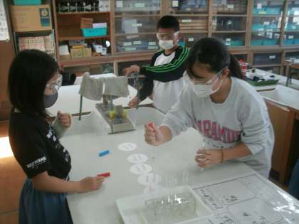 理科学習の様子です。4時間目はグループごとに実験を進めていきます。