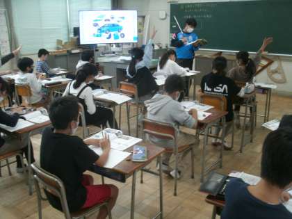 社会科学習の様子です。「自動車産業」の学習に取り組んでいます。