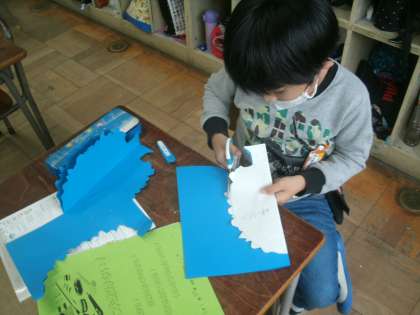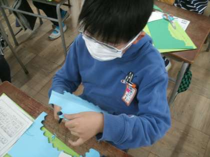 図画工作科学習の様子です。「大きな木の下で」という作品に取り組んでいます。