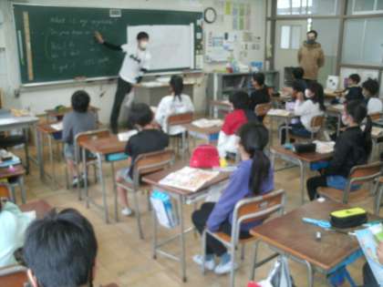 英語活動の様子です。火曜日はマーク先生も一緒に活動します。