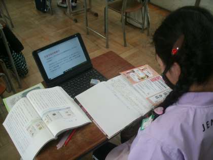国語科学習の様子です。「和の文化」についてタブレット端末を活用して調べています。