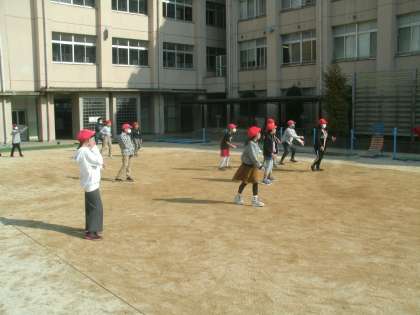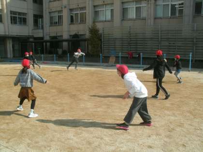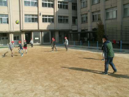 今日も秋晴れ。いい天気です。5年生の子ども達がドッジボールで遊んでいました。