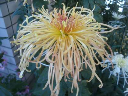 この時期になると玄関ホールで菊の花が見事に咲きます。金塚小学校の自慢の一つです。