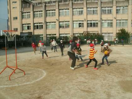 3年生が体育科学習で取り組んでいる「セストボール」をしていました。