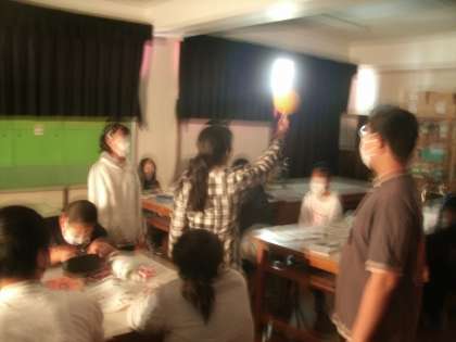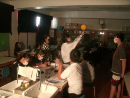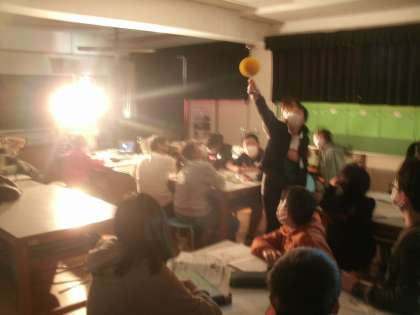 理科学習の様子です。今日も理科室を真っ暗にして、月の満ち欠けについて実験をしていました。