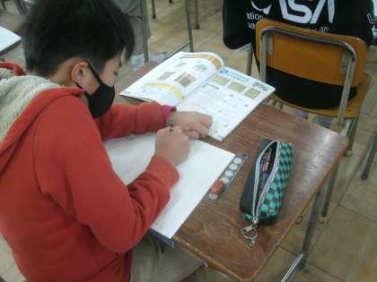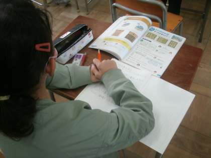 算数科学習の様子です。今日の学習課題は「こみぐあいの比べ方を考えよう」です。