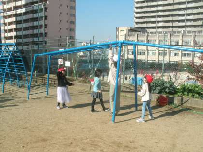 第2運動場は低学年に大人気です。今日も6年生の女の子が一緒に遊んでくれていました。