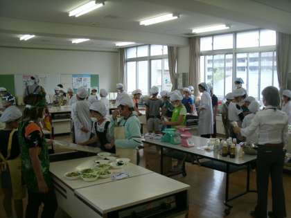 子どもたちは、栄養士さんによる食に関するお話、関西スーパーでの買い物ゲームやレジ打ち体験、買い物ゲームで買ってきた野菜を使った調理実習等、様々な充実した体験活動を通して、学習を深めることができました。
