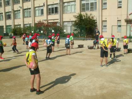 体育科学習の様子です。来週から「シュートゲーム」に取り組みます。