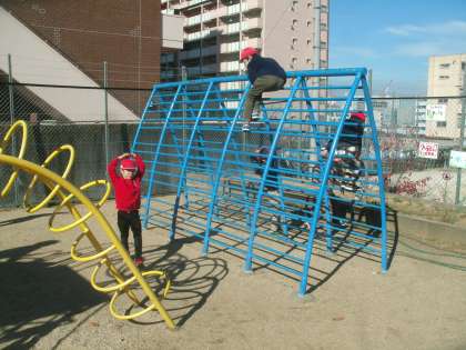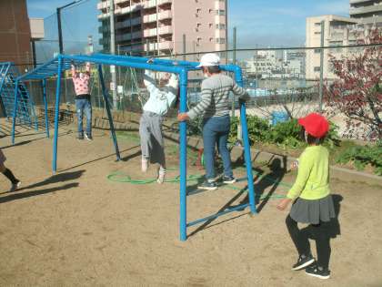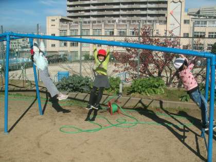 今日も第2運動場の遊具で低学年が遊んでいます。