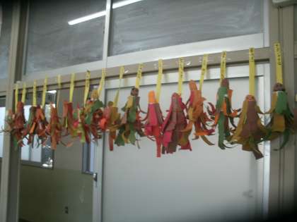 (写真2・3)かわいいミノムシが教室にぶら下がっています。