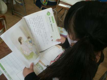 道徳科学習の様子です。教材文「わたしがおねえさんよ」を読んで「いのち」について考えます。