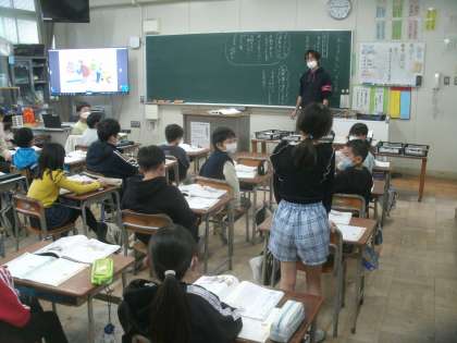 道徳科学習の様子です。今日は教材文『「おもてなし」ってなあに』を読んで考えます。