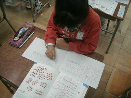 算数科学習の様子です。今日は「99より大きいかず」の学習です。