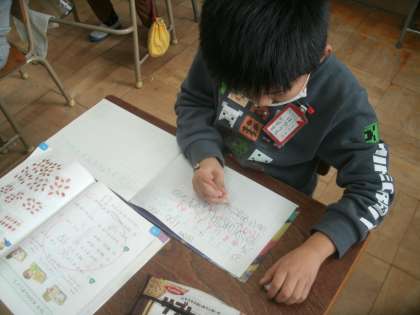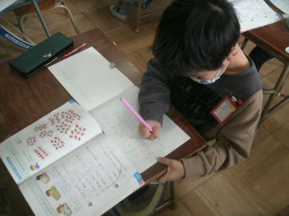 算数科学習の様子です。 「10が10こで100(百 ひゃく)」ということを学習しました。